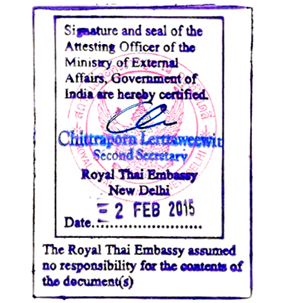 - Attestation from Thailand Embassy in Mumbai ( This final step not required for HCCH Member countries )